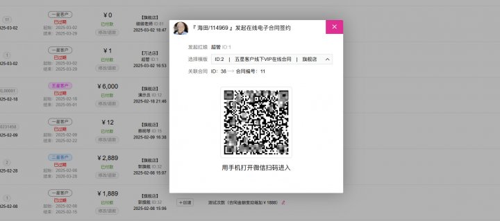 ●新增《电子合同》可以自定义合同模版、自定义公章等;支持红娘权限创建、合同签字审核,支持会员在线签名、支持多页合同骑缝章;后台可以创建合同后可以绑定在线签署等;本公司自主研发,免费使用,不限次数。